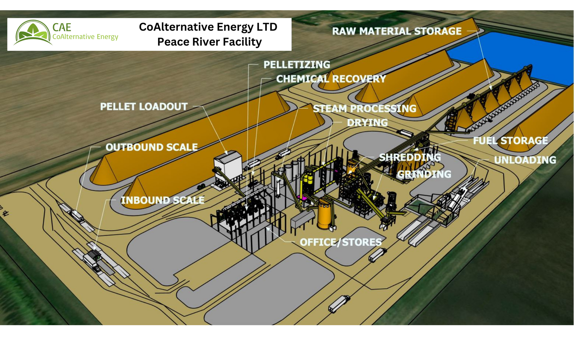 CAE plans to build multiple 45-50 tonne per hour production facilities in Canada and worldwide that will produce 360,000 tonnes of pellets per year.